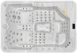 Вы можете приятно удивить своих друзей, предложив компании из 8-и человек комфортно разместиться в гидромассажном бассейне American Whirlpool 982, размером 3,4 х 2,3 м. В том, что прочная акриловая чаша этого устройства выдержит их и 2,7 тонн воды можете не сомневаться, ведь ее конструкция усилена фибергласом и поддерживается прочным стальным каркасом.